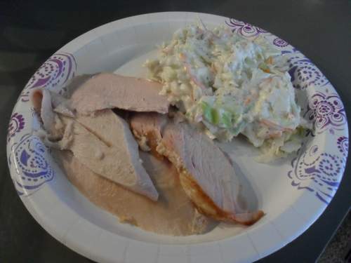 2 roasted chicken legs, with skin1/2 cup green beans with butter